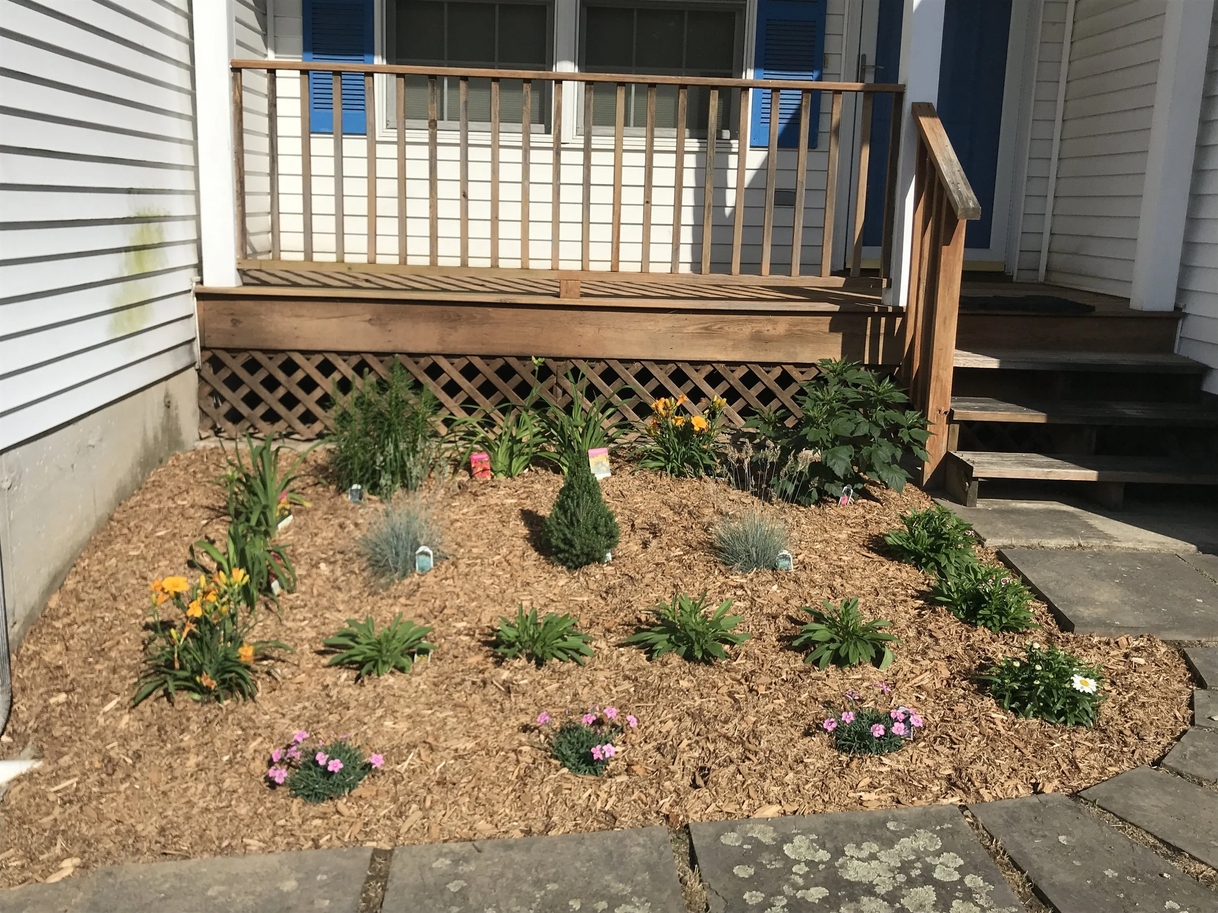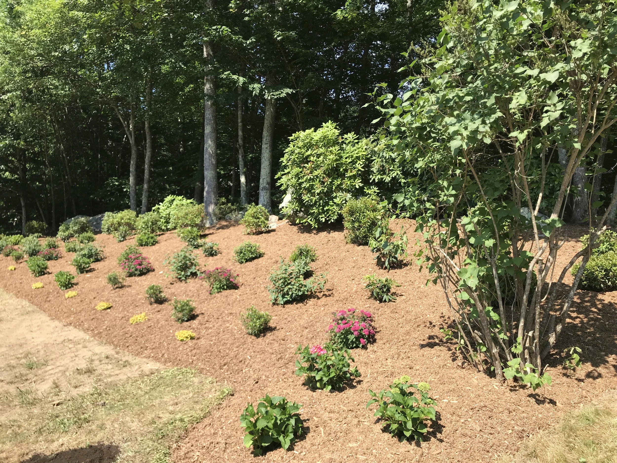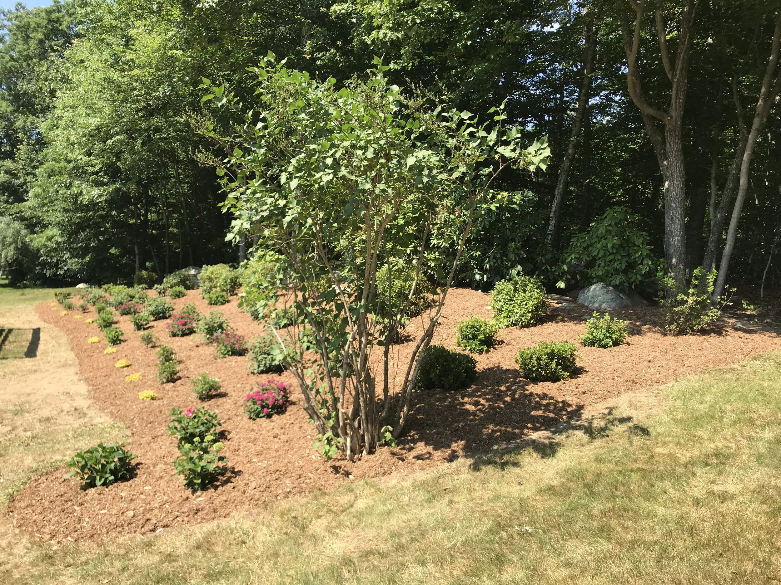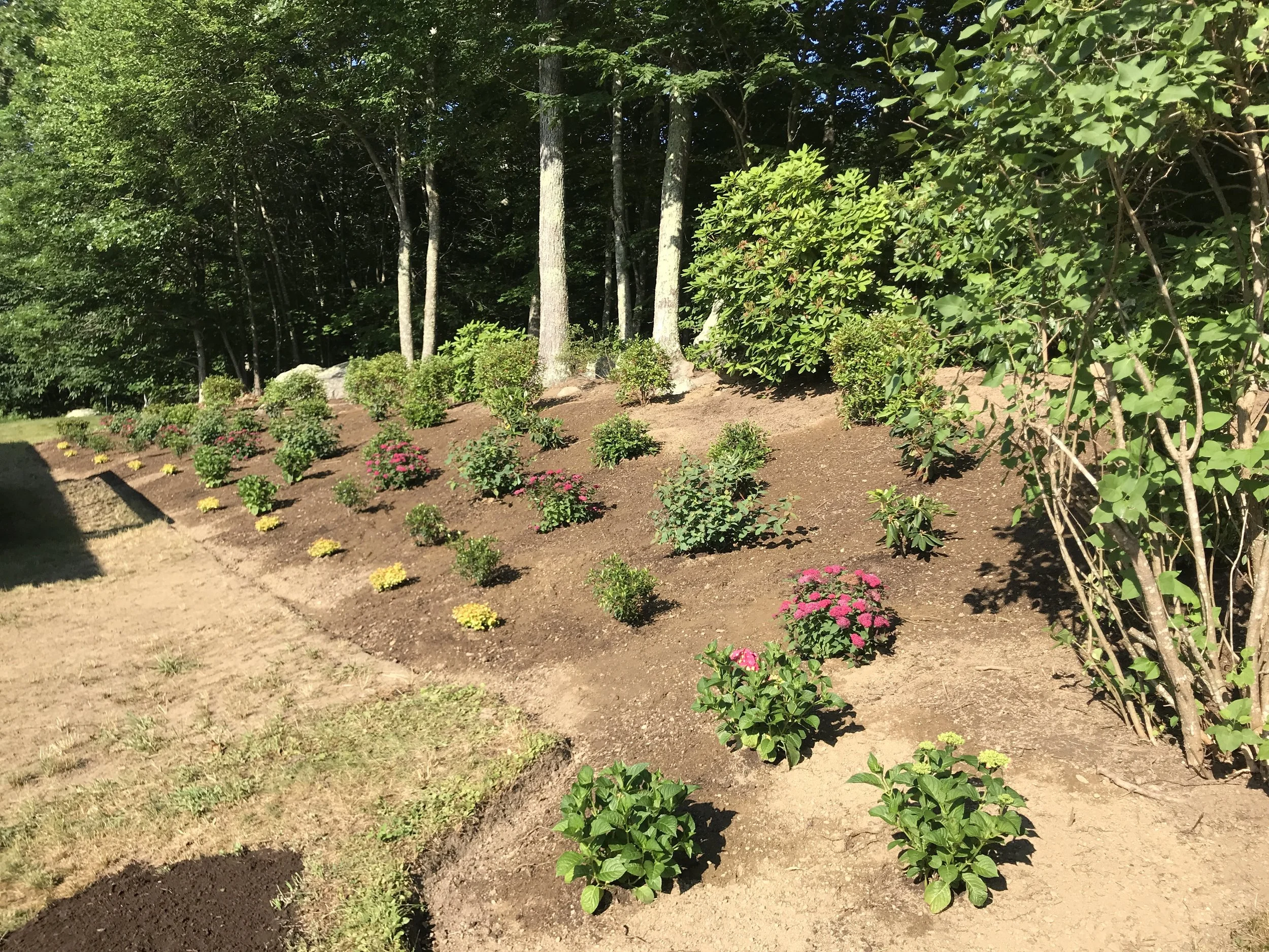 This landscape rehab in Mystic consisted of tearing out the overgrown existing bushes and debris and replace them with flowering shrubs and perennials. The selection of plants will give the customer color in their yard starting in early April and right through the first frost. The colors of varying pinks, purples, white, red, orange, yellow, green, and blue will come from blooms on the shrubs and perennials as well as the leaf colors that will change in the fall and when the plants begin to leaf out in the spring. Give us a call for your landscape rehab project so we can help make your plant beds into a color oasis.
